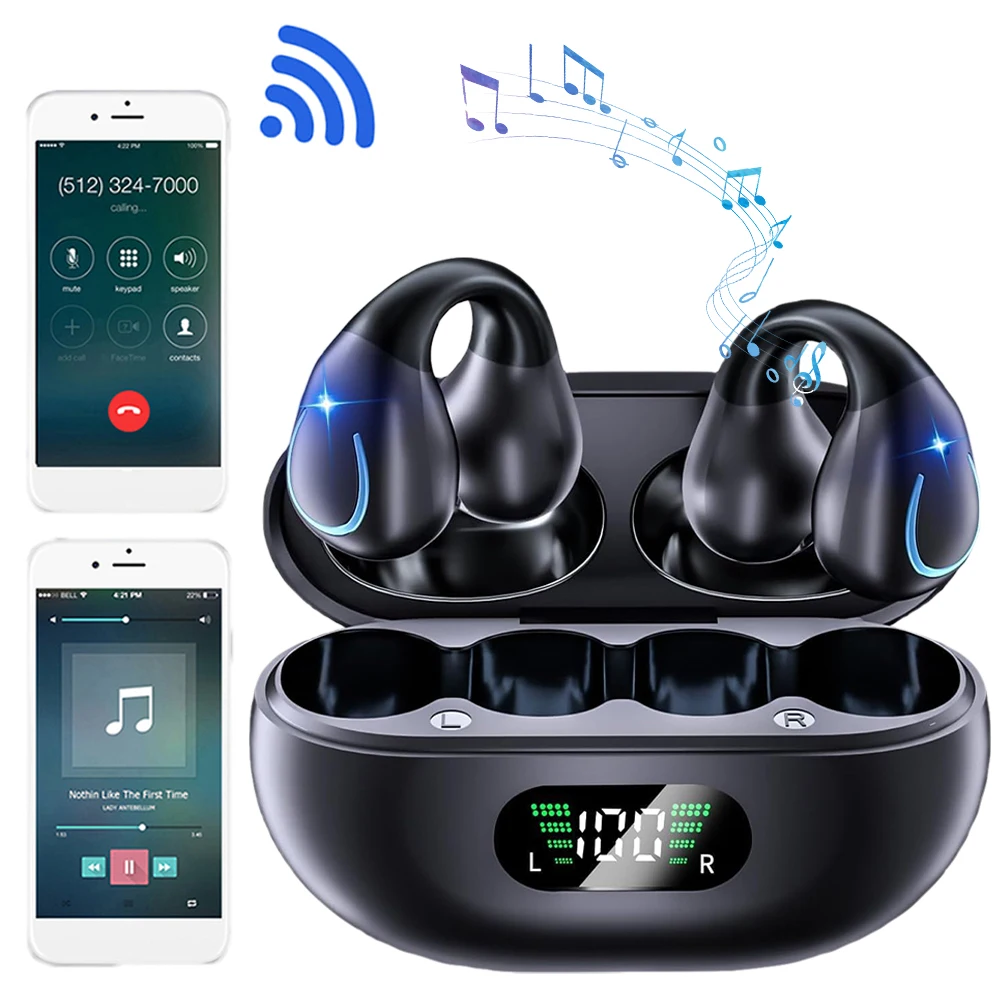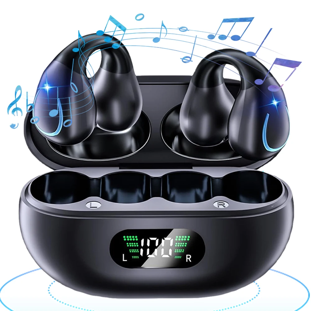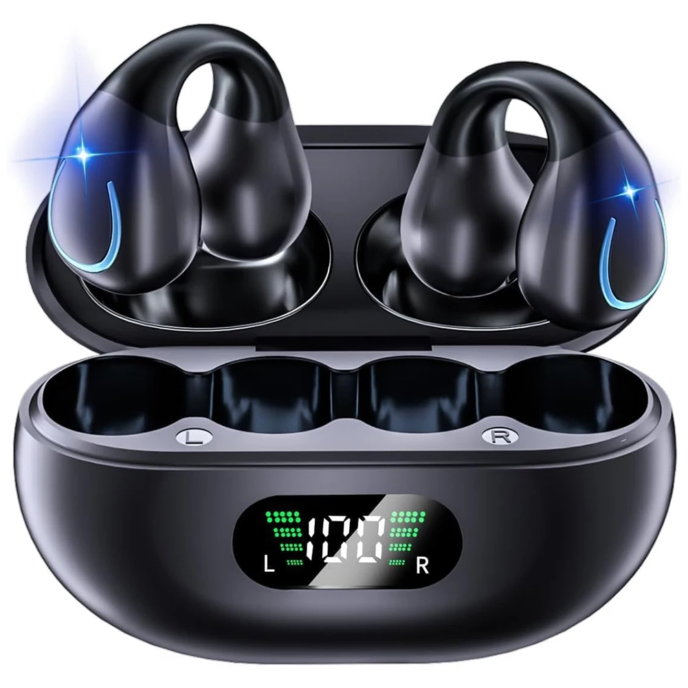 5. Extended Playtime and Digital Display: Enjoy up to 6 hours of use on a single charge, with the running headphones' charging case providing an additional 24 hours, totaling 30 hours of playtime. The smart LED display shows remaining battery life, eliminating power concerns.