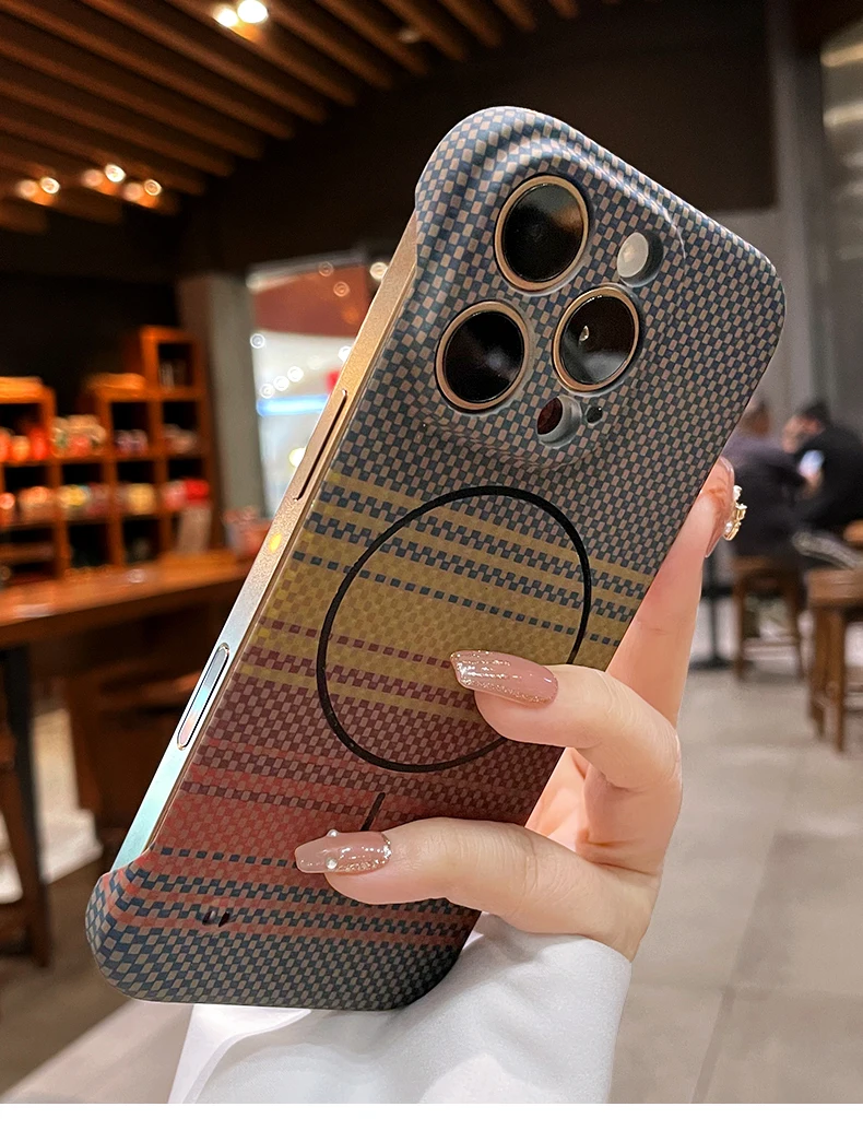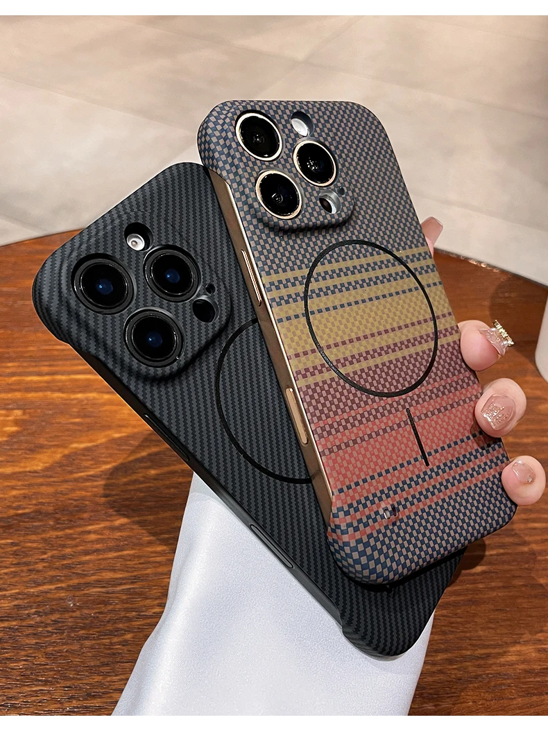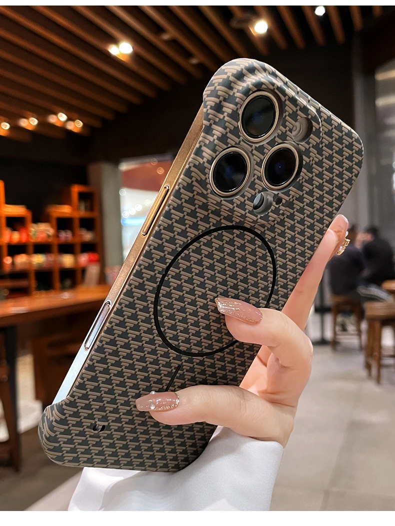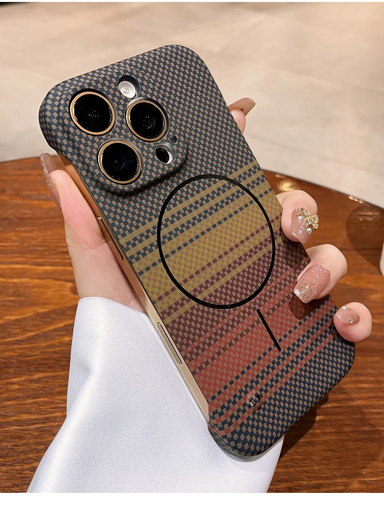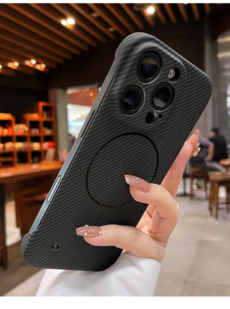 Luxury Frameless Carbon Fiber Texture Magnetic Case For iPhone 16 15 14 Plus