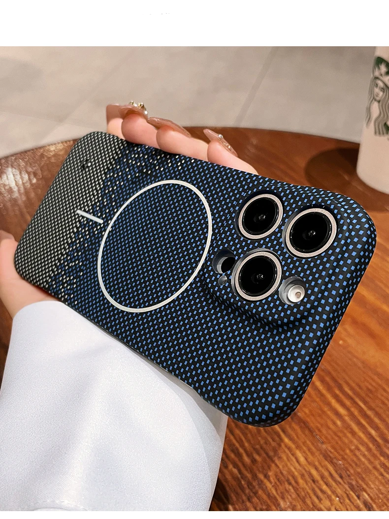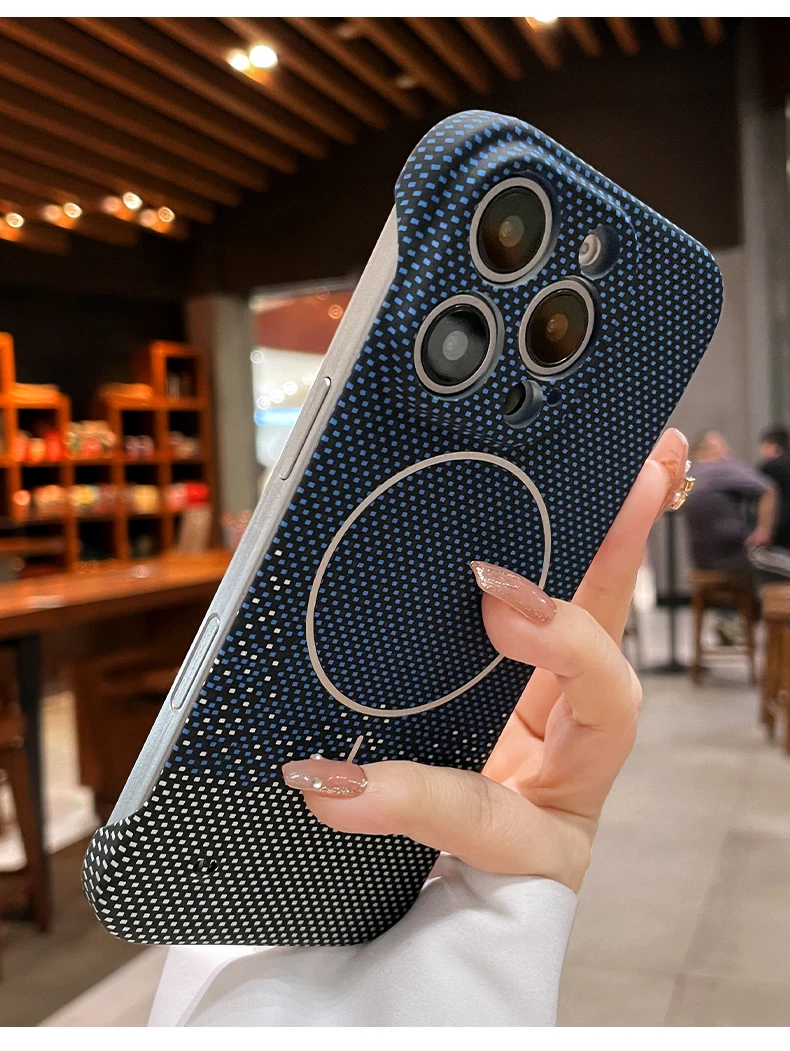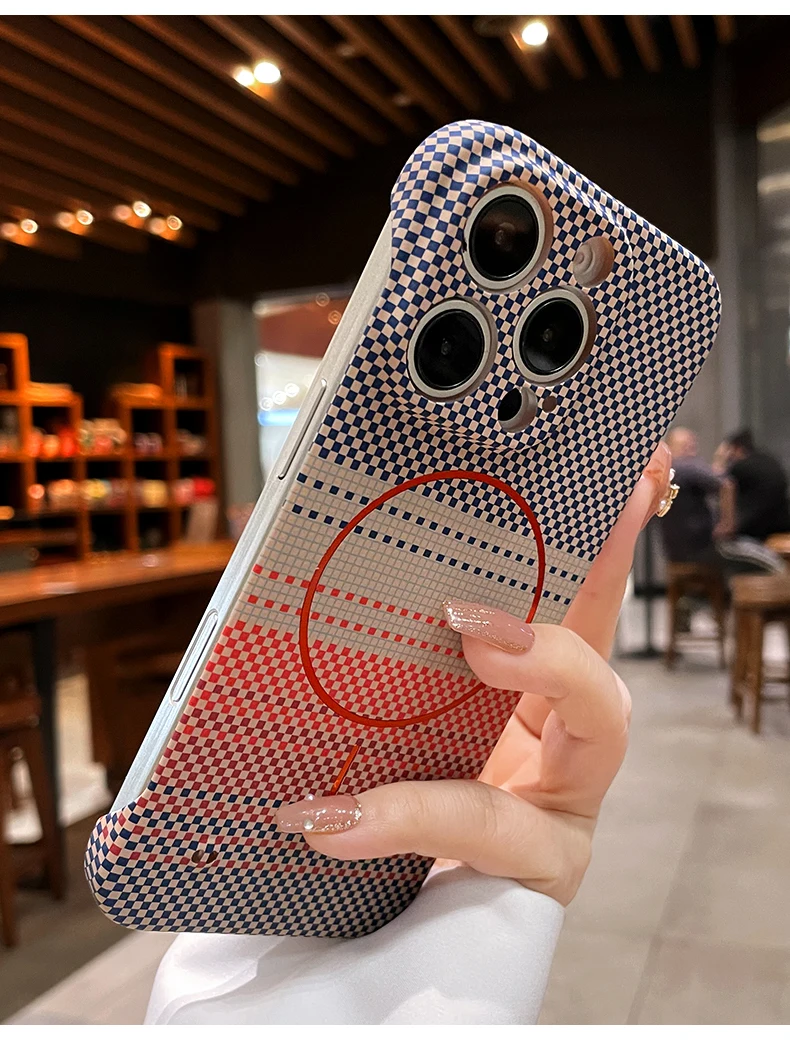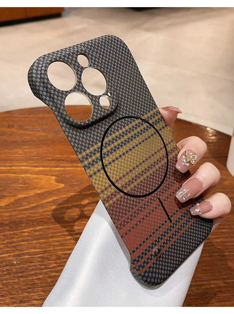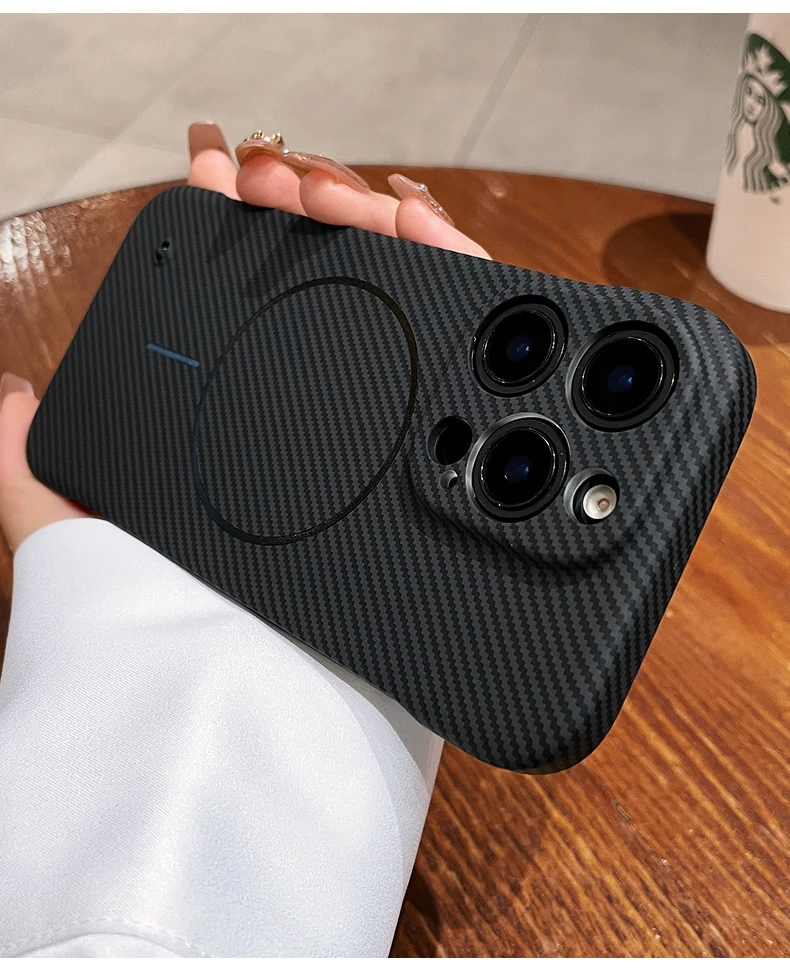 Luxury Frameless Carbon Fiber Texture Magnetic Case For iPhone 16 15 14 Plus